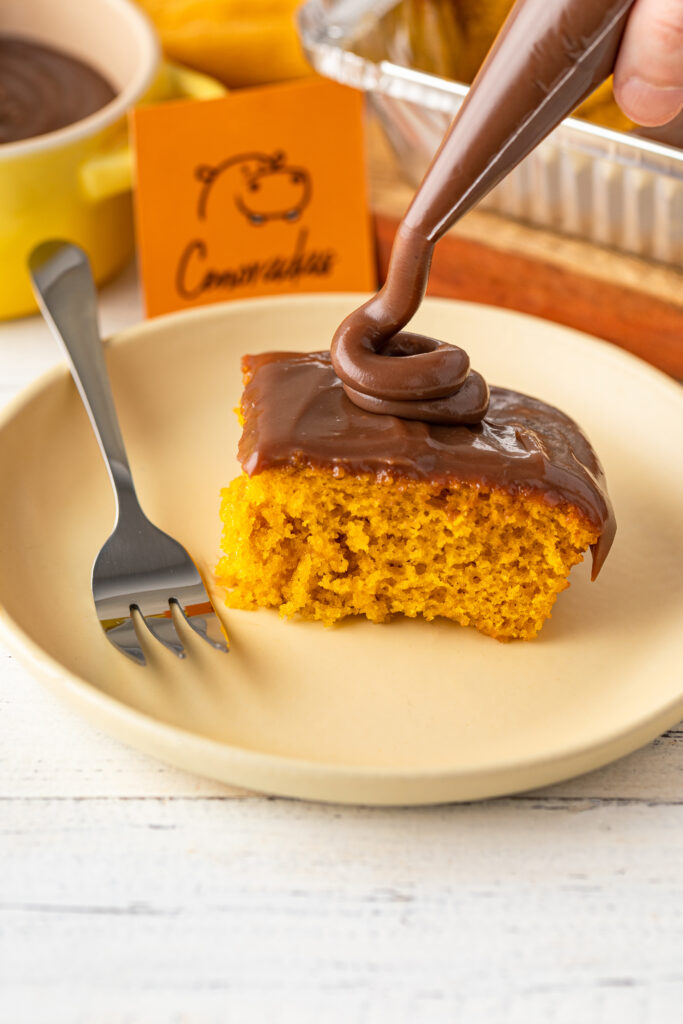 Marmitinha: Bolo de cenoura com cobertura de cenoura igual o de vó com opções de cobertura: ao leite, intensa e craquelada